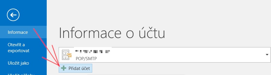 V Microsoft Outlook klikněte na vlevo nahoře na Soubor, dále na tlačítko Přidat účet:
